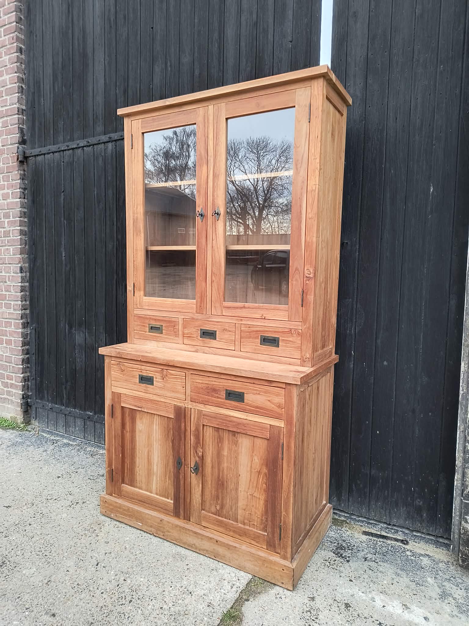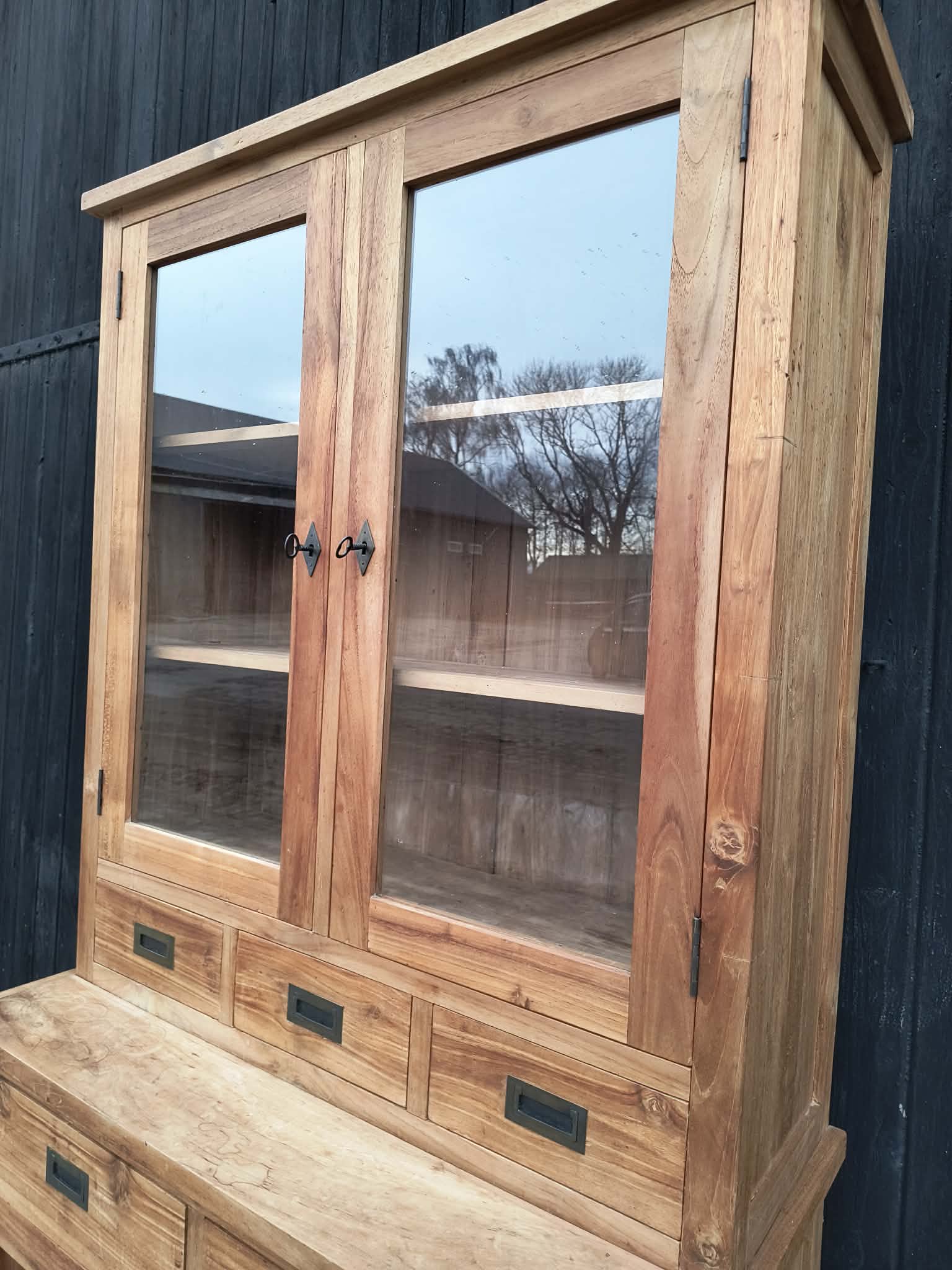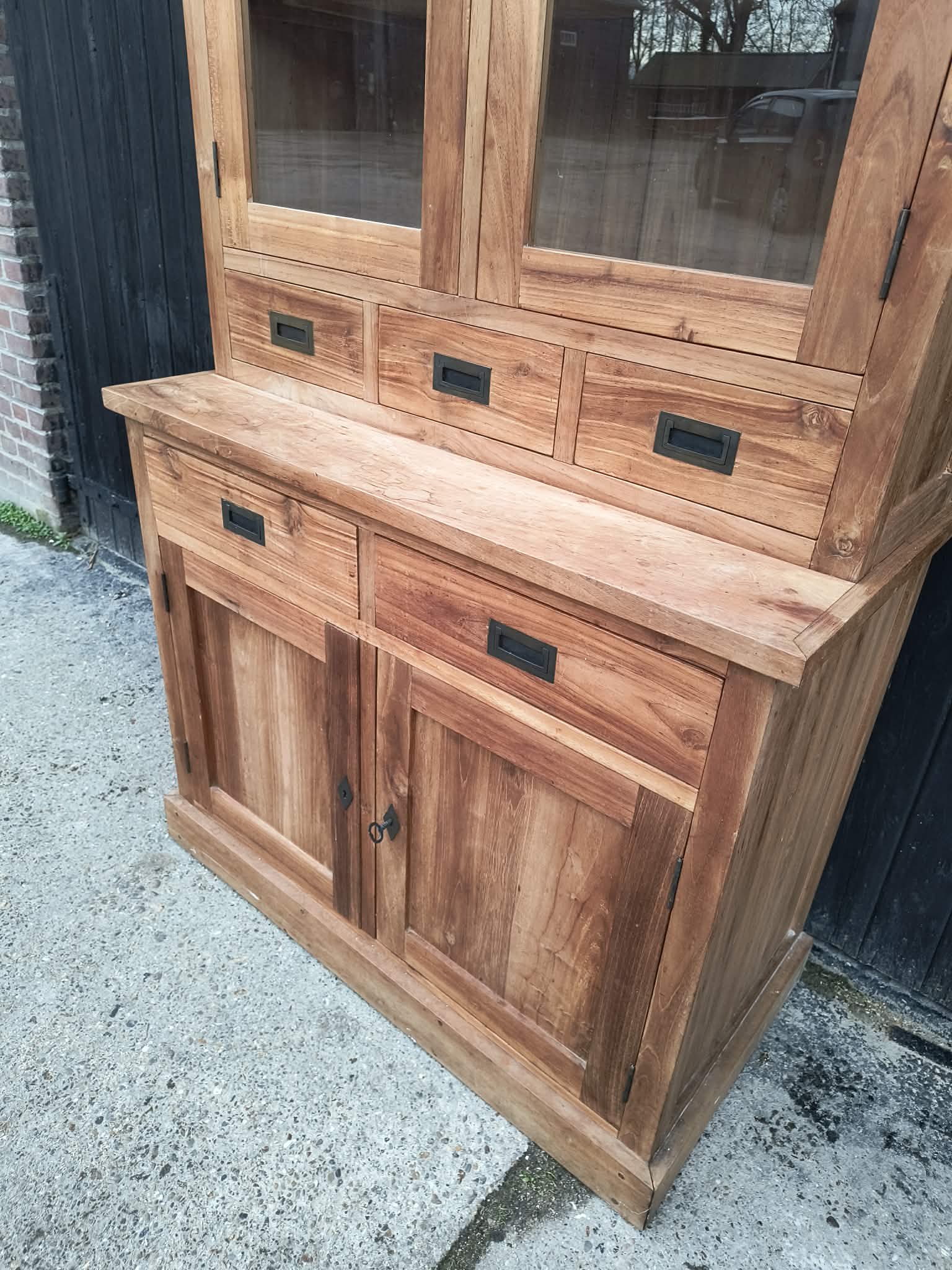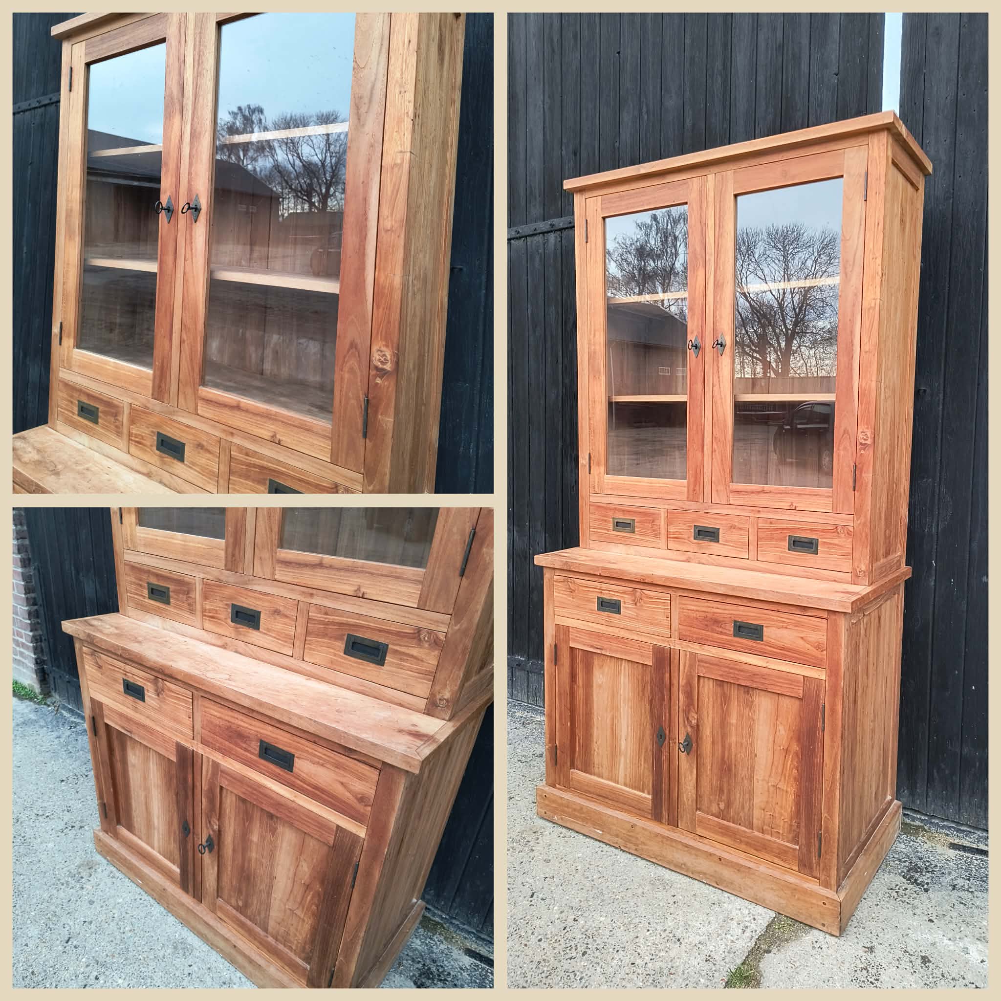 Massief teakhouten buffetkast in prachtstaat. Geleverd in ieder gewenste kleur of (deels) gezandstraald voor de vraagprijs.