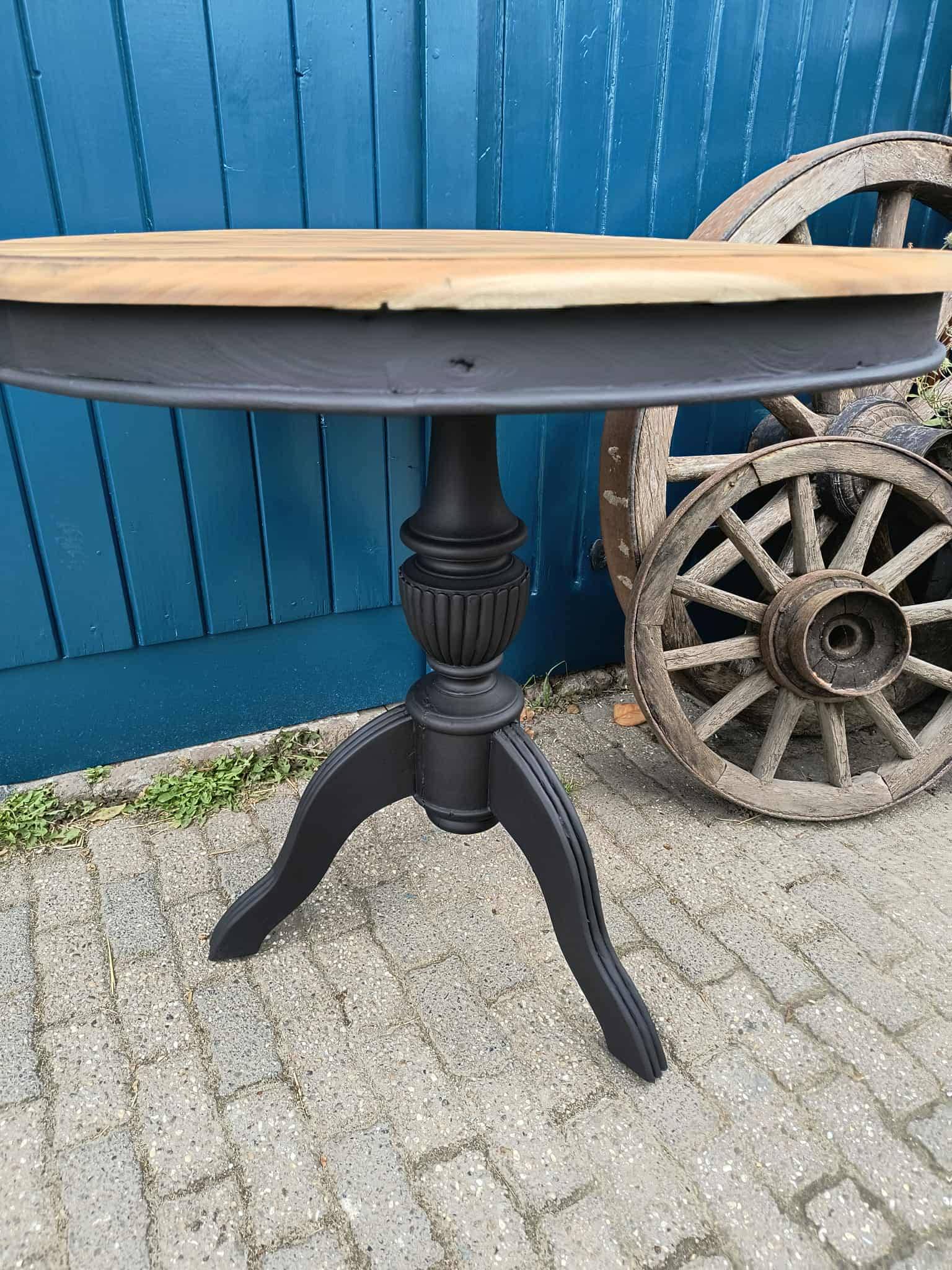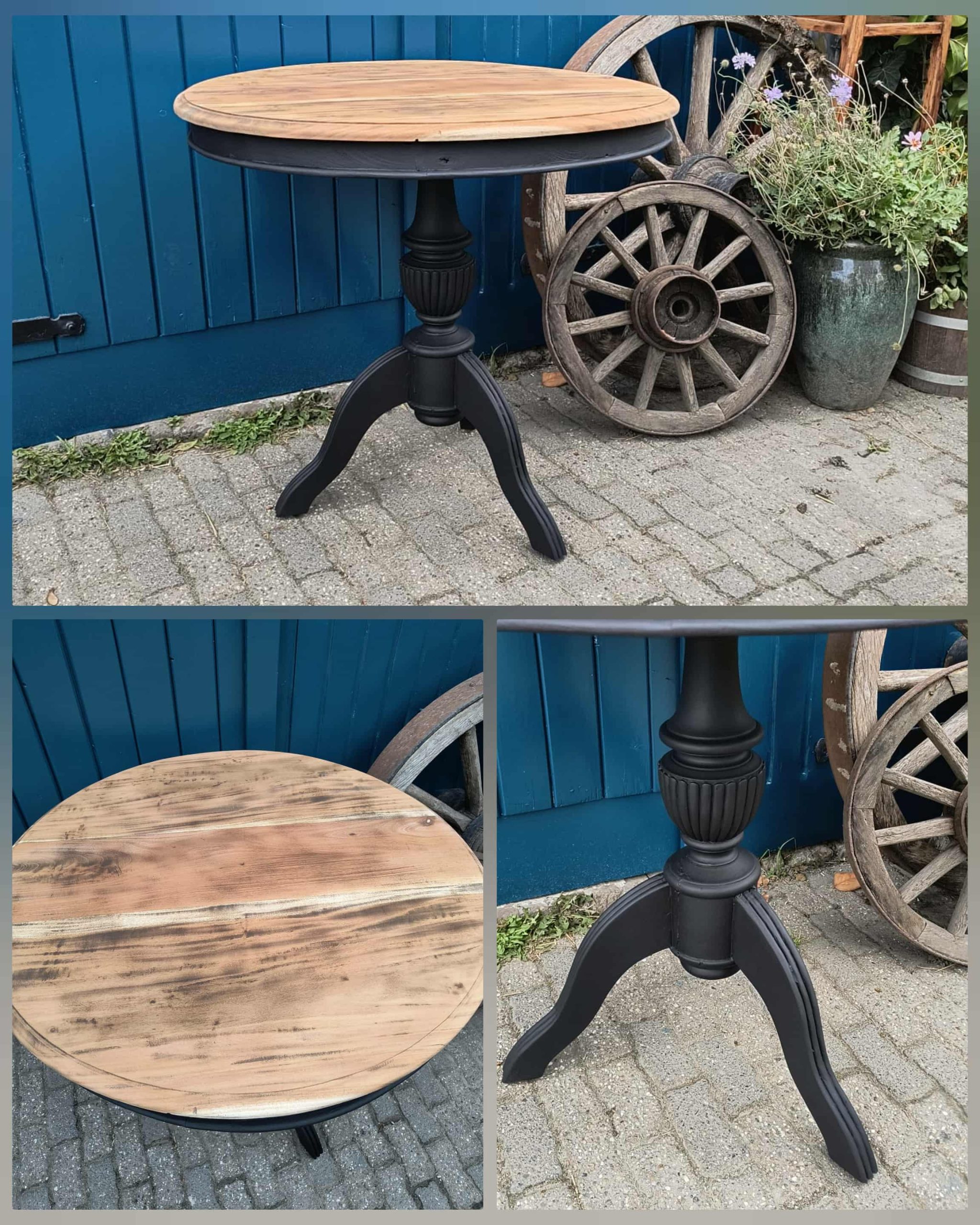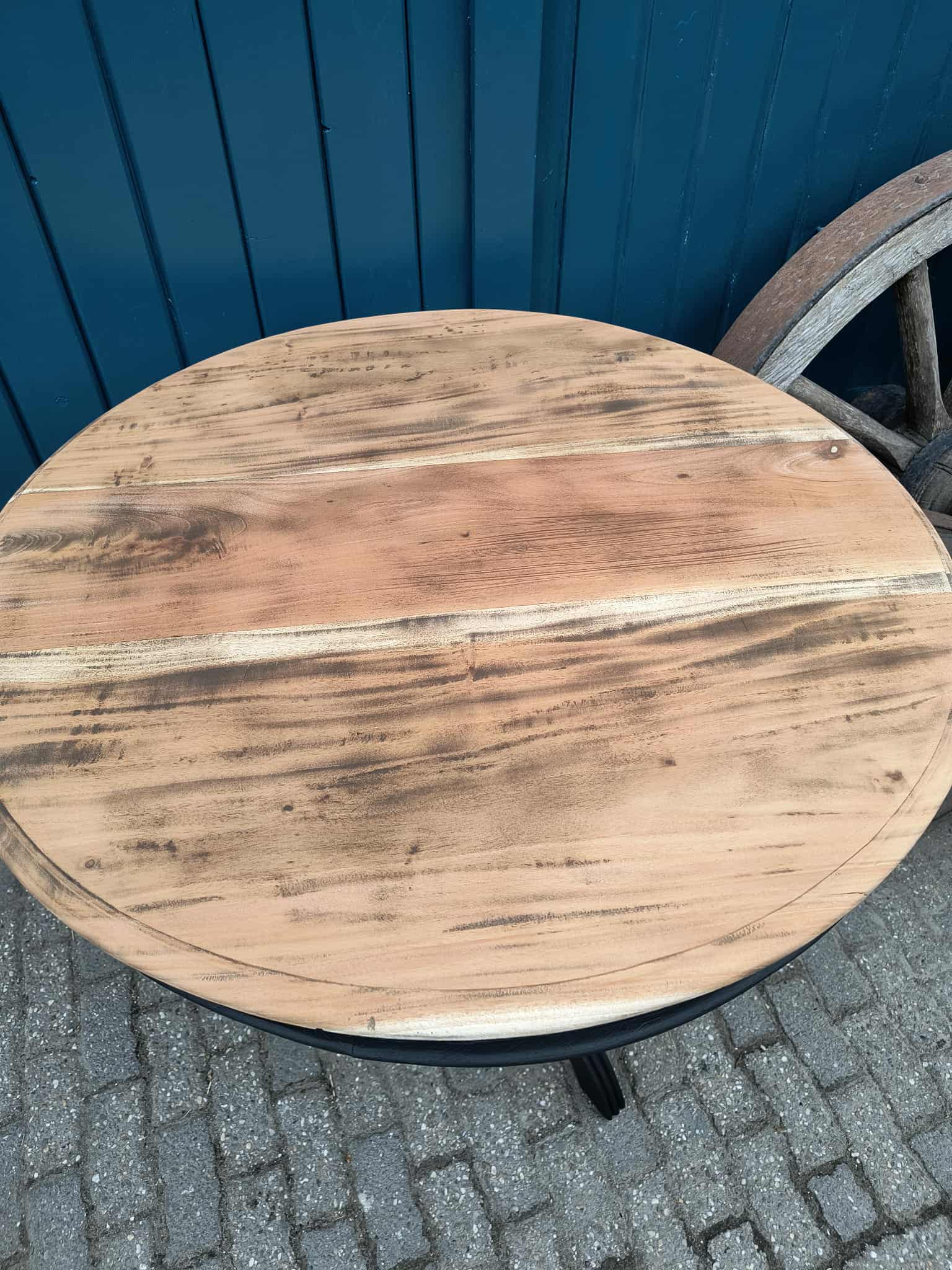 Dit gave klassieke tafeltje is ideaal als bijzet of plantentafel. De kleur is mat zwart en het bovenblad is gezandstraald. Het teakhouten bovenblad behandeld en de kleur is mangowarm. Per direct leverbaar. Binnen een week bij u thuisbezorgd. Ook dagelijks te bezichtigen in onze showroom.
