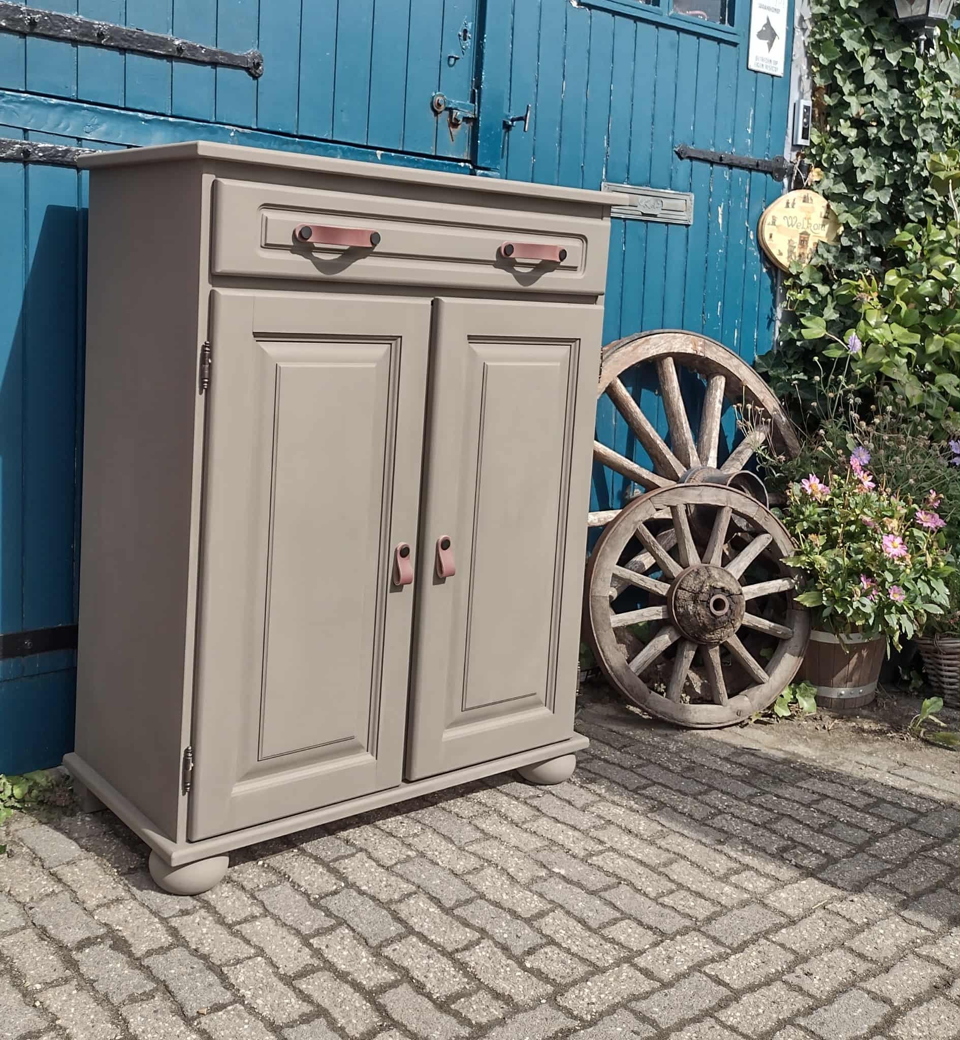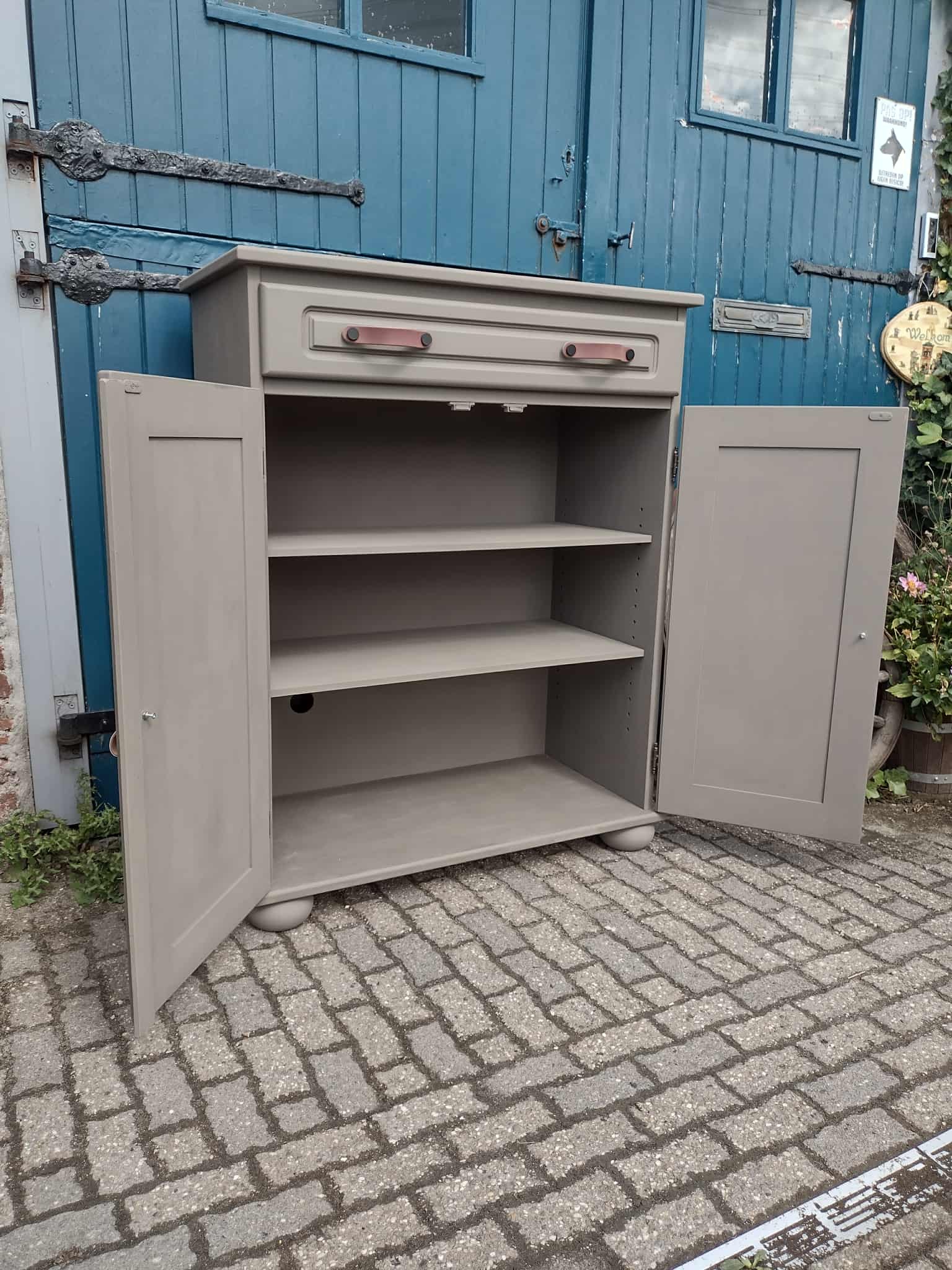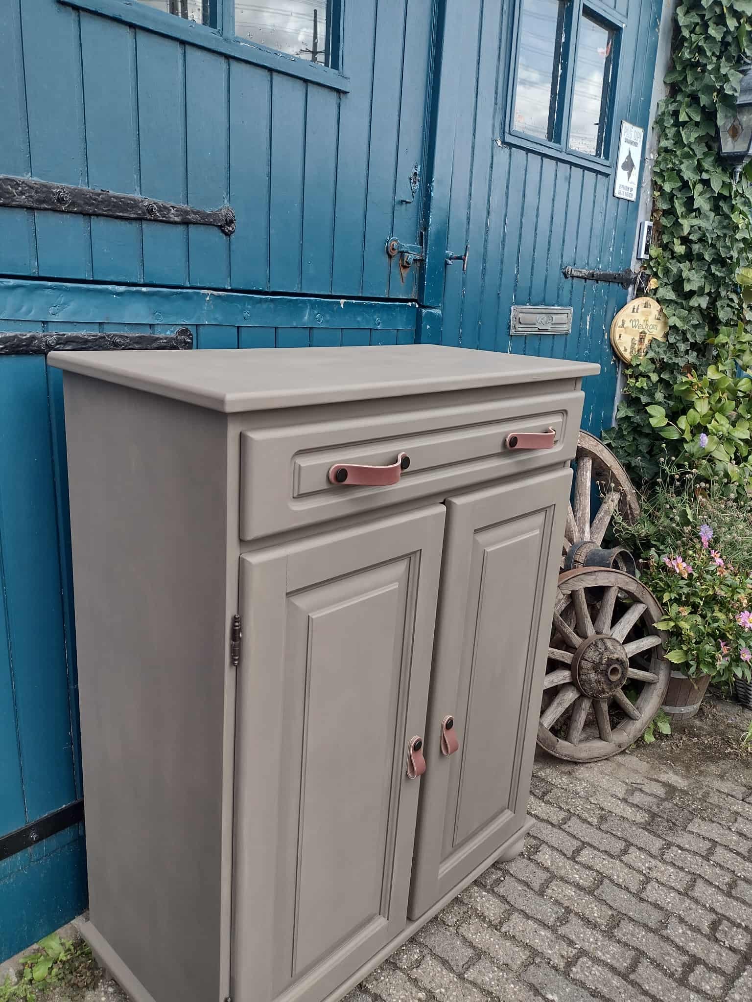 Deze te leuke meidenkast is in de kleur Kaki. De lederen handgrepen zijn ook leverbaar in een zwarte variant. Binnen een week bij u thuisbezorgd. Ook dagelijks te bewonderen in ons atelier (op afspraak)
