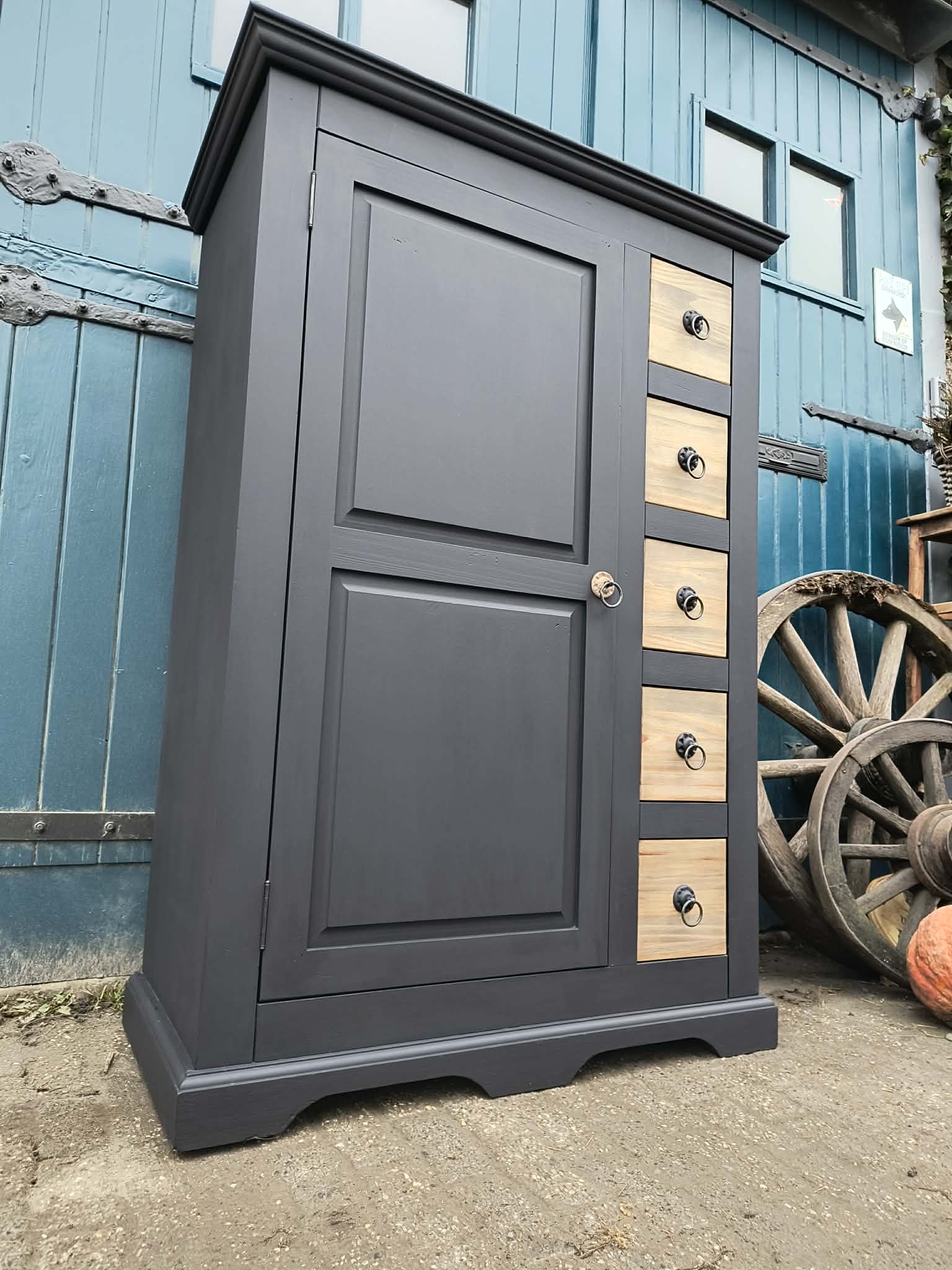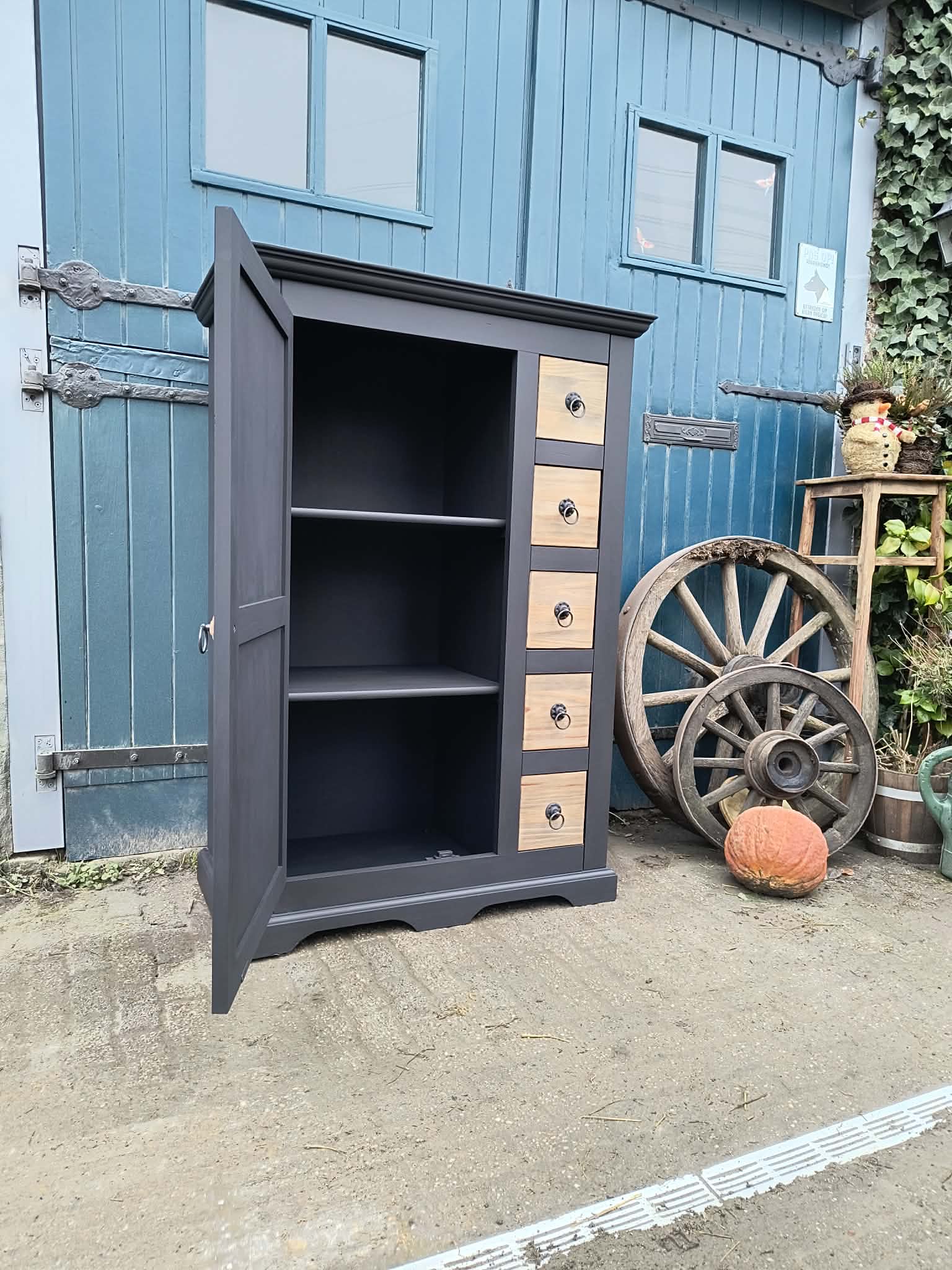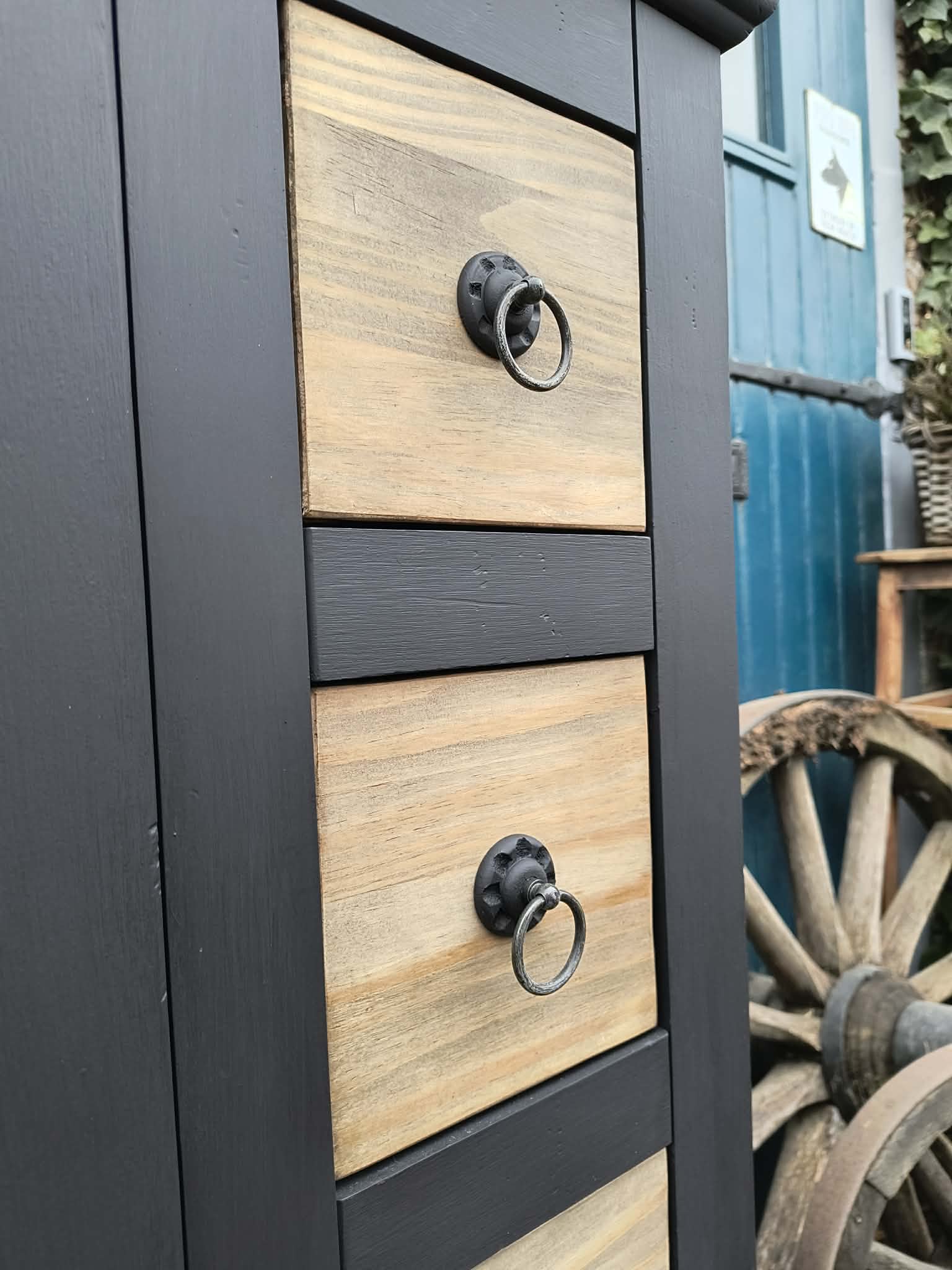 Deze stoere meidenkast is geheel mat zwart. De lades hebben we gezandstraald en behandeld met de kleur black wash. Per direct leverbaar en binnen een week bij u thuisbezorgd