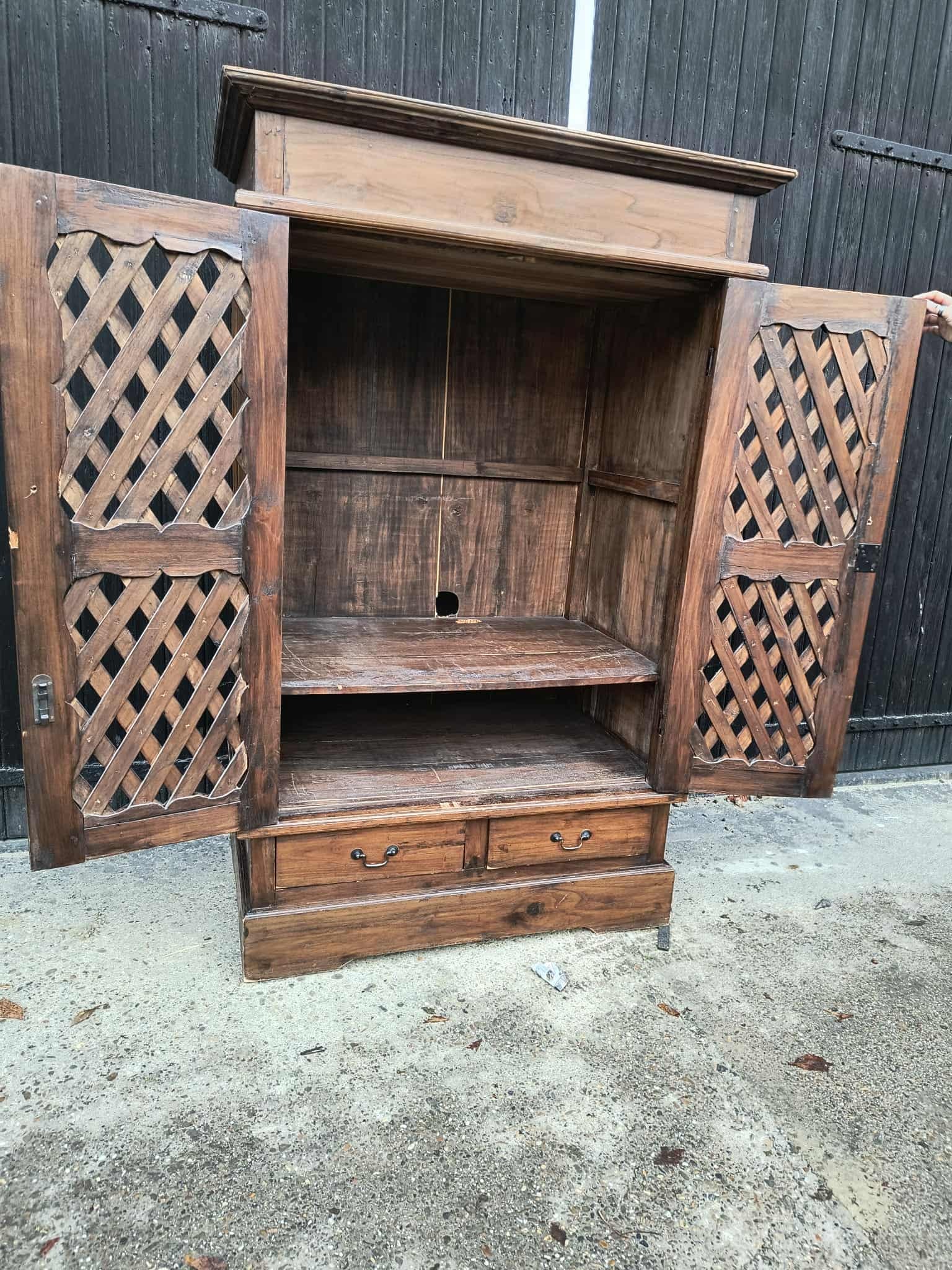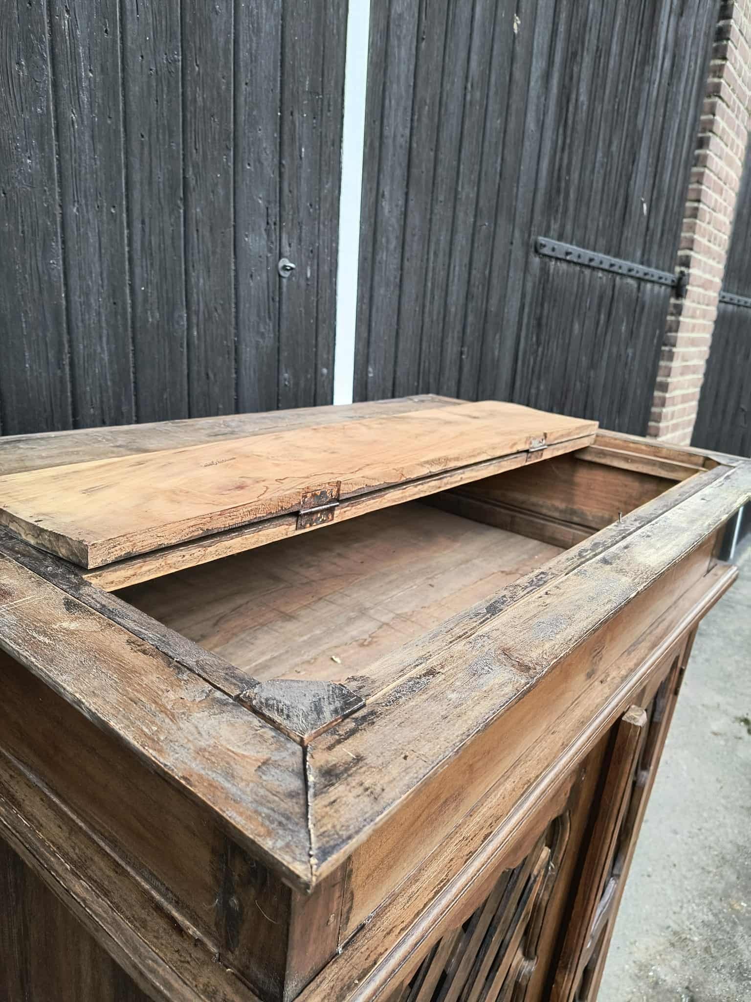 Deze prachtige gevlochten meidenkast is van hele mooie en massieve kwaliteit. De bovenkant lijkt normaal, maar er is een verborgen luik die je vanuit binnen niet kunt zien. Leverbaar in ieder gewenste kleur of deels gezandstraald voor de vraagprijs.