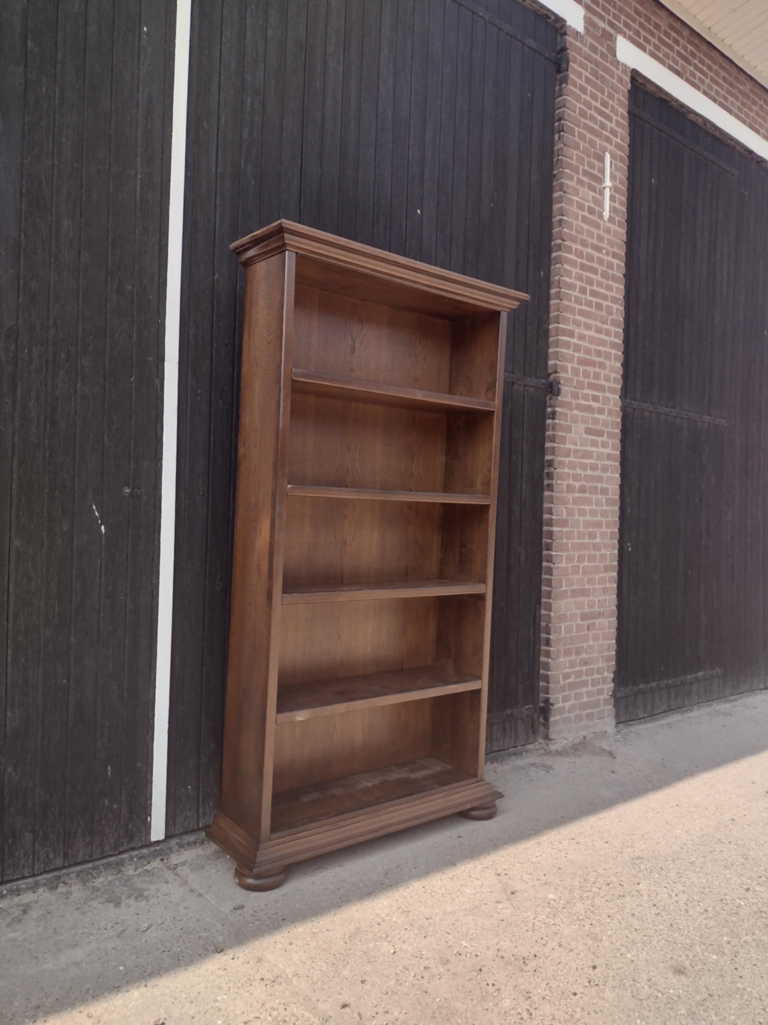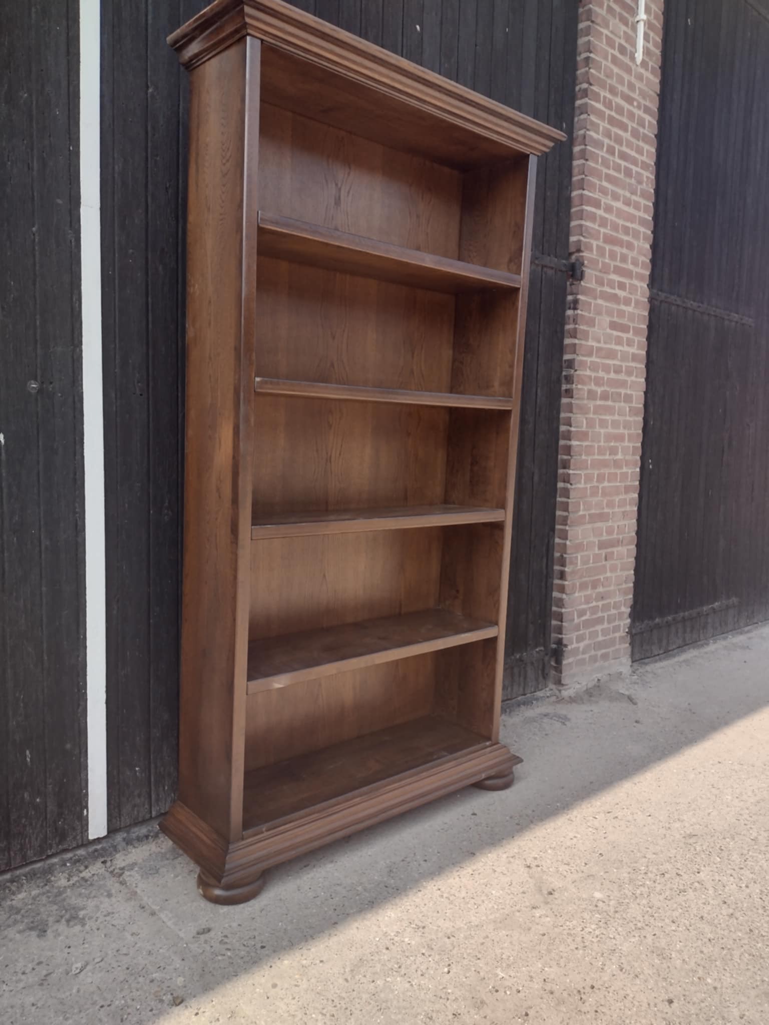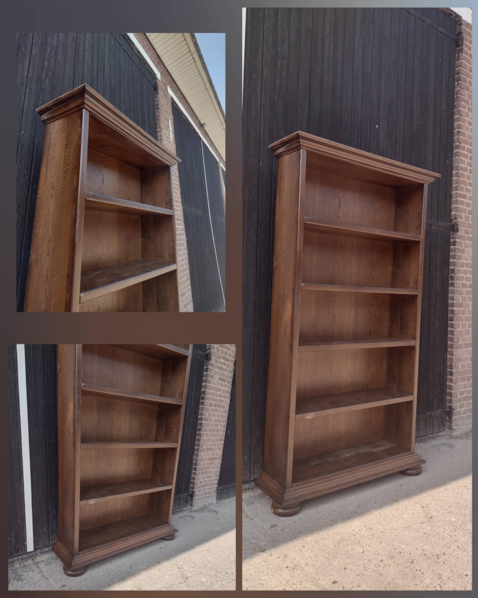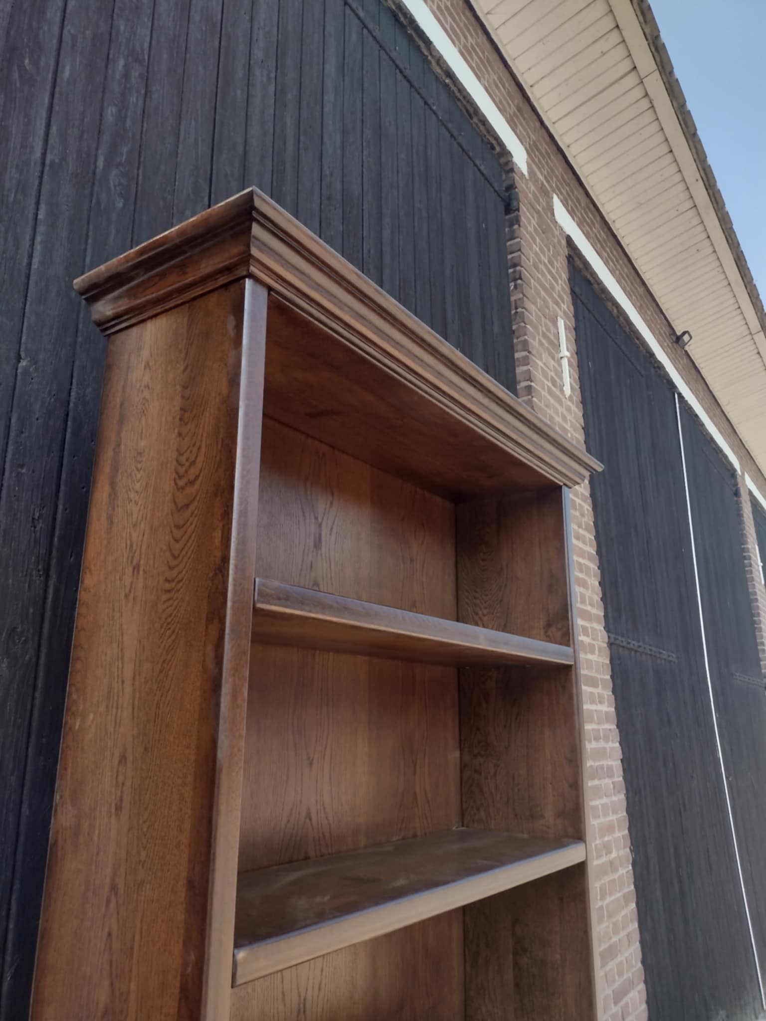Boekenkast hoog en strak model. Helemaal van massief eikenhout Leverbaar in ieder gewenste kleur naar keuze voor de aankoopprijs. Gezandstraald (deels) ook mogelijk.