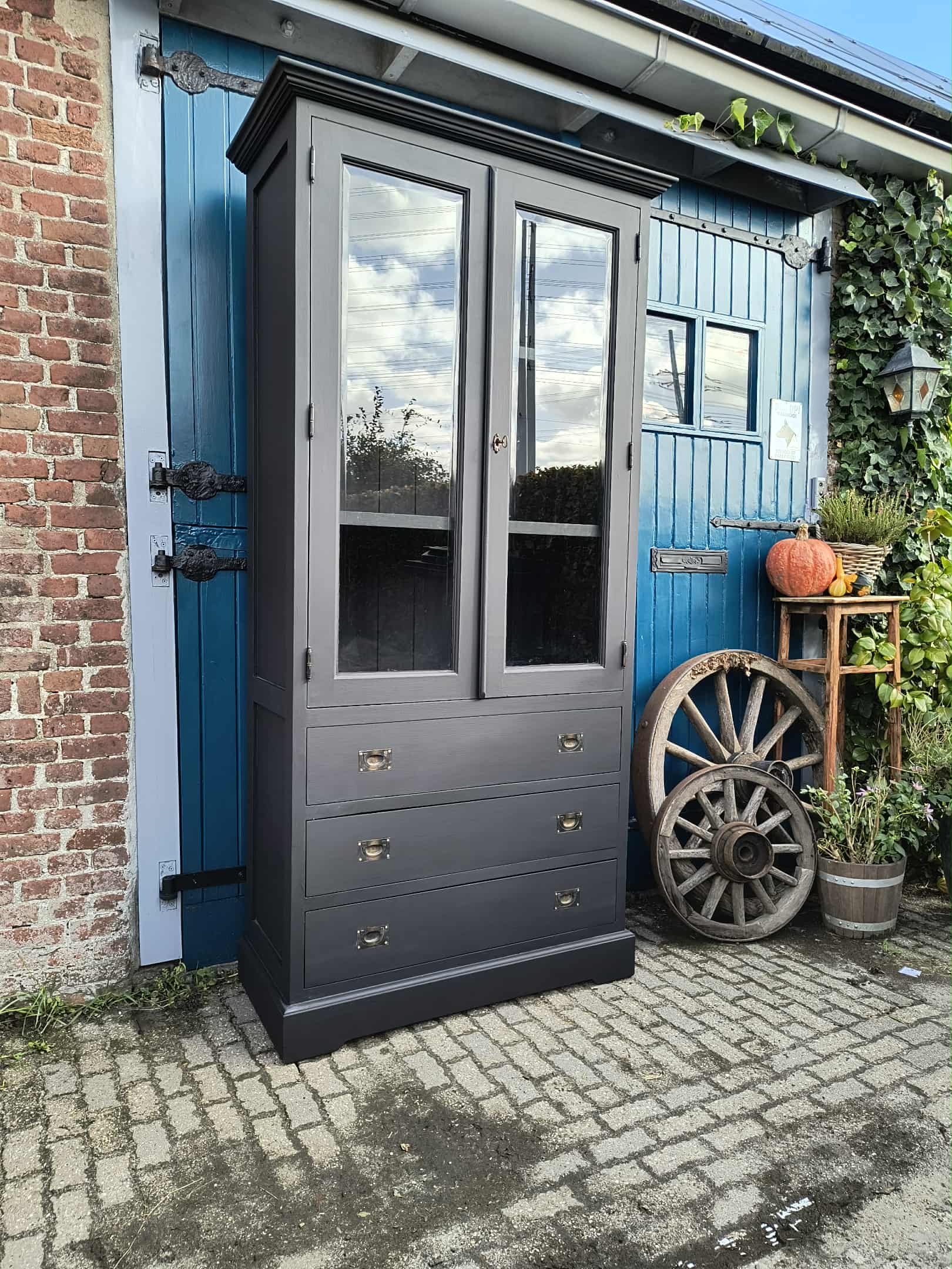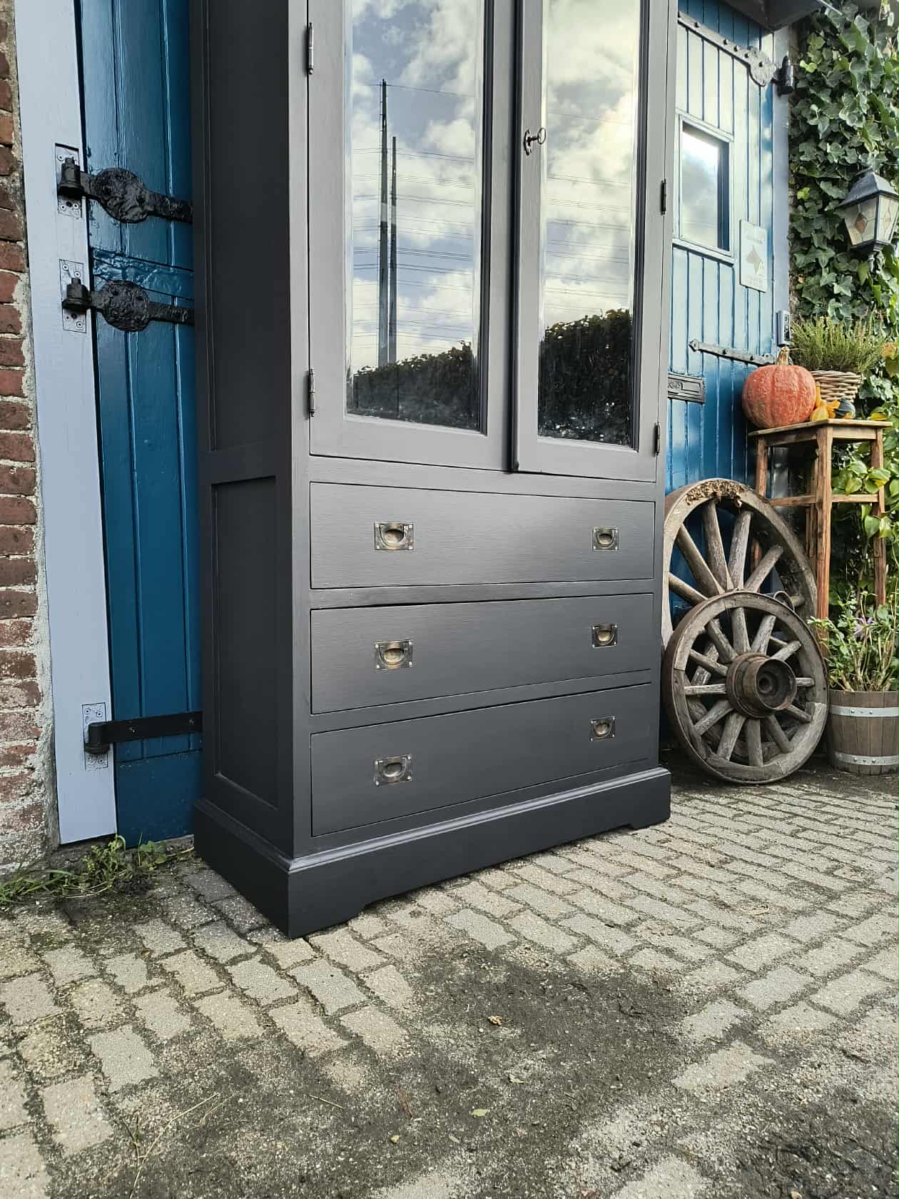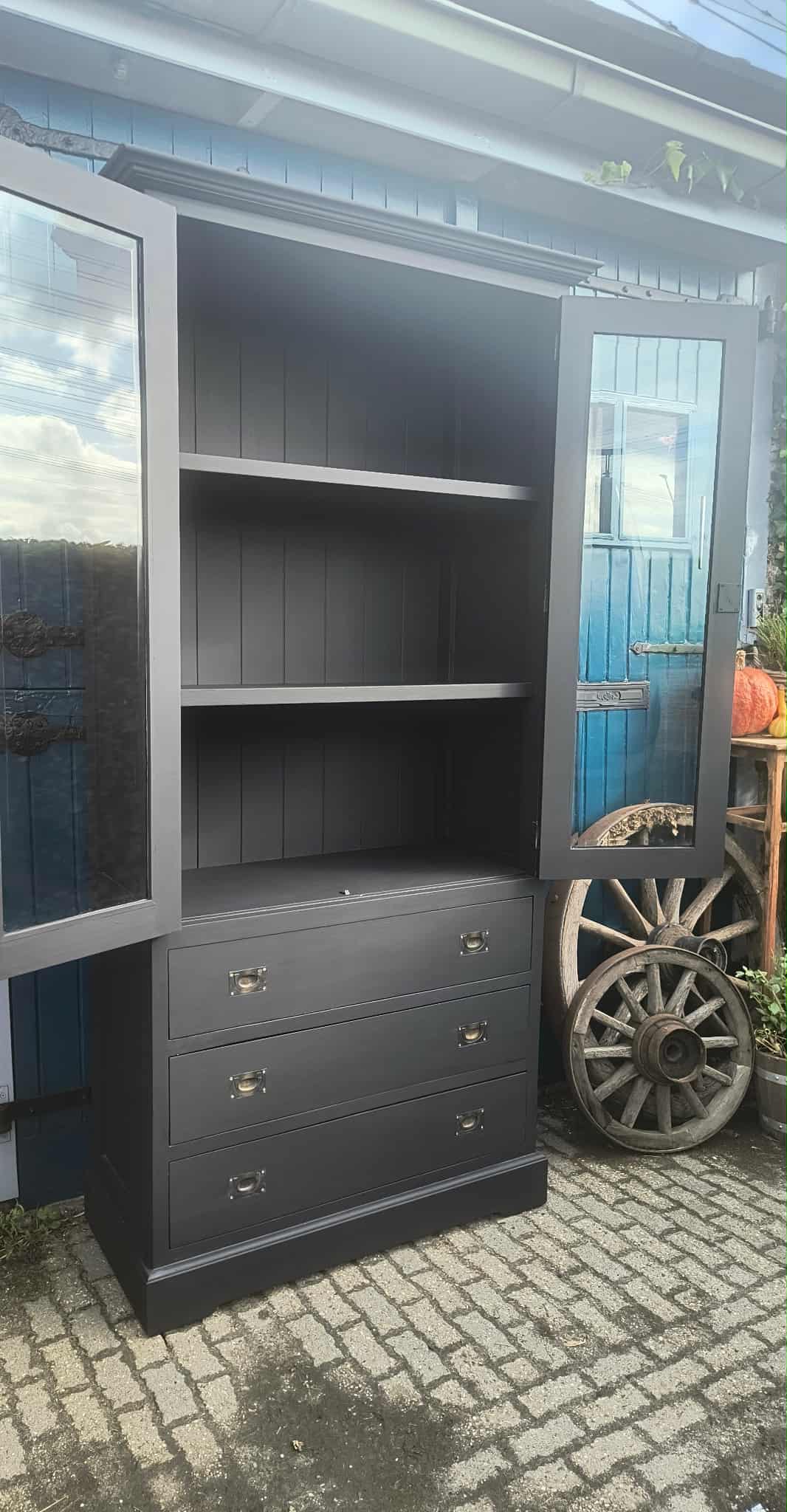 Super strakke mat zwarte servieskast buffetkast vitrinekast. Ook geheel vanbinnen mat zwart. Per direct leverbaar en binnen een week bij u thuisbezorgd. Ook dagelijks te bezichtigen in ons atelier op afspraak.