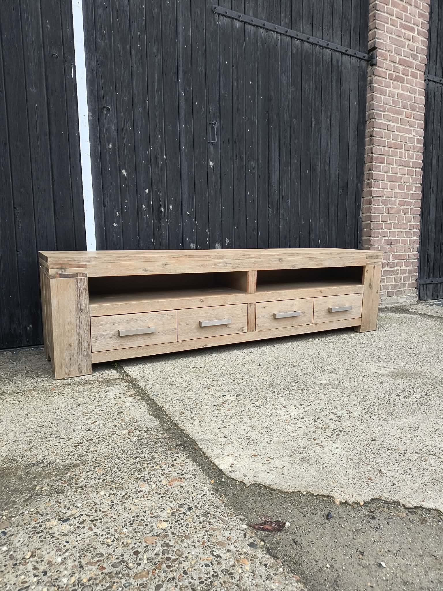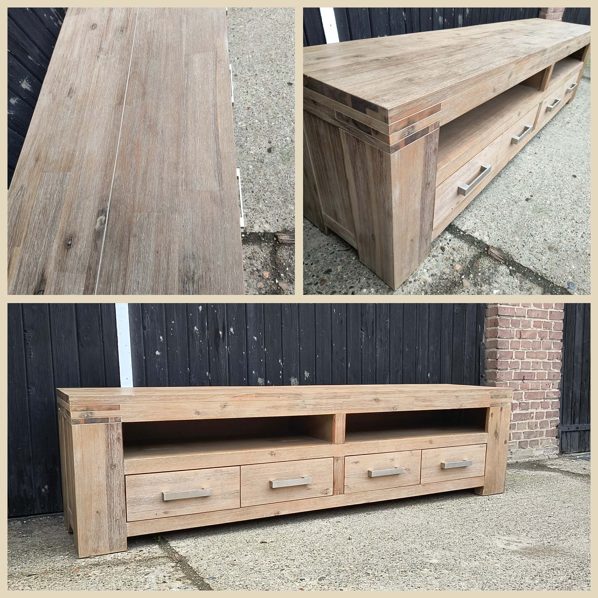 Tv meubel van massief hout kunnen wij geheel naar wens restylen. Leverbaar in iedere gewenste kleur of (deels) gezandstraald voor de vraagprijs.