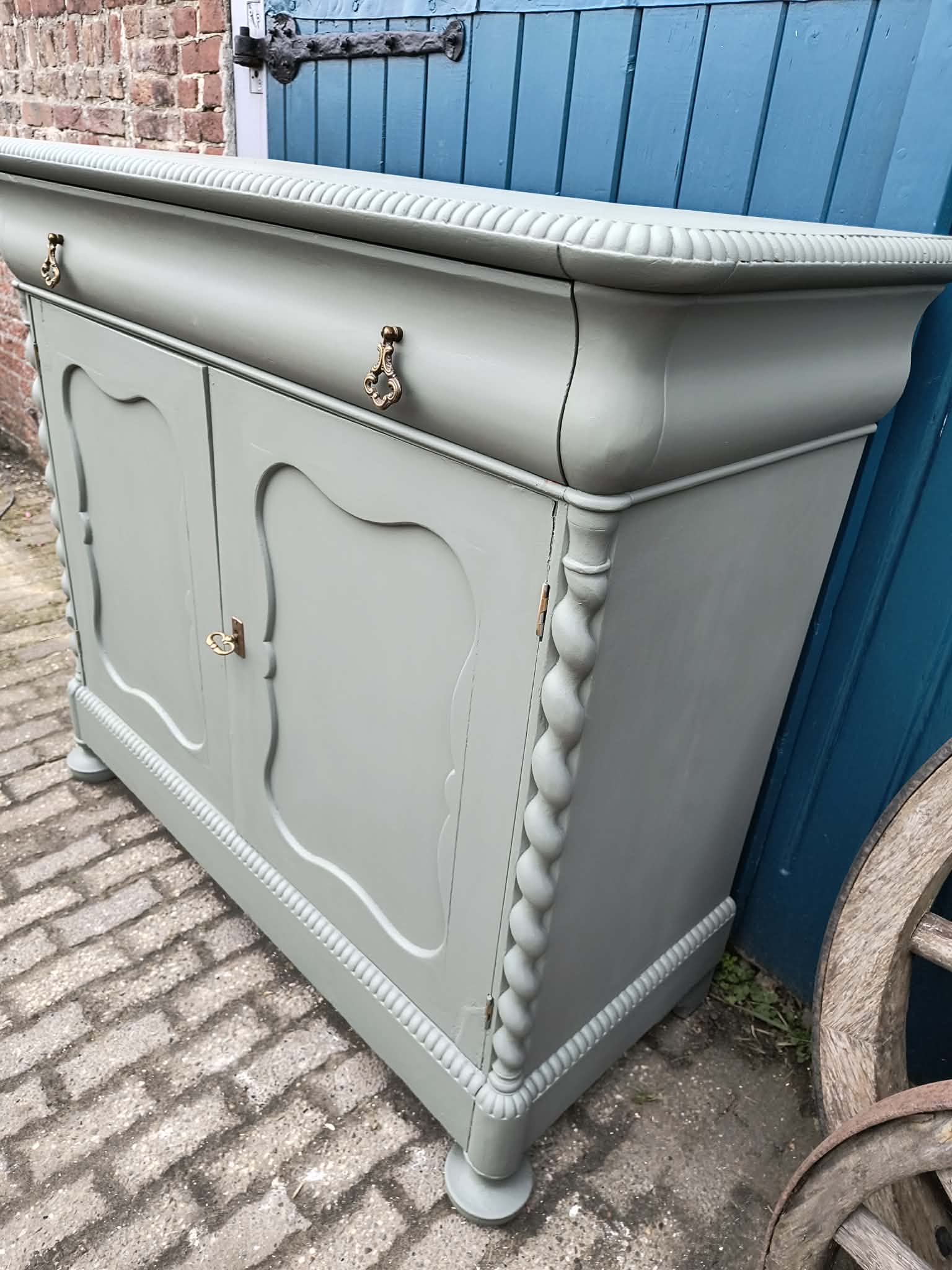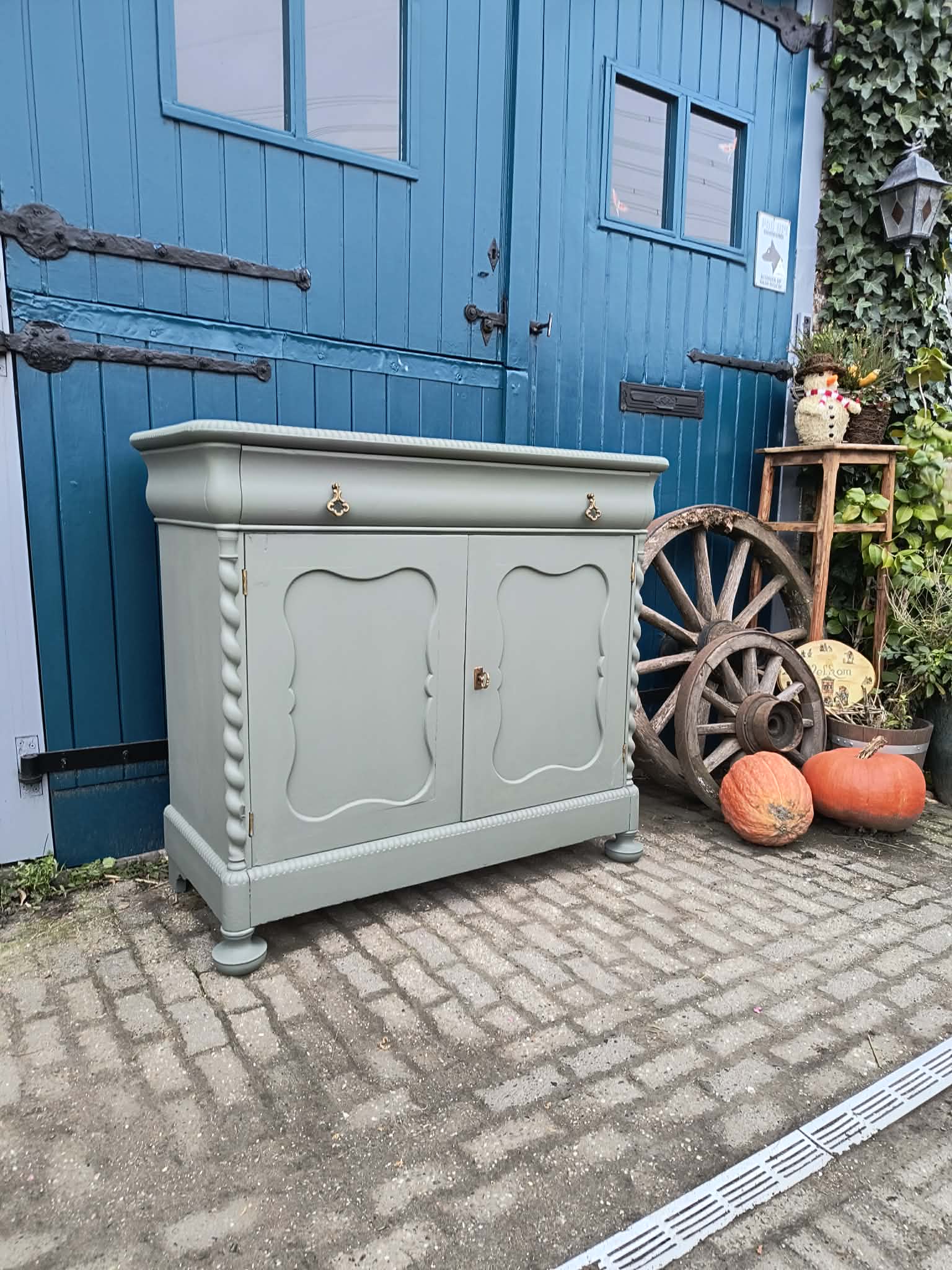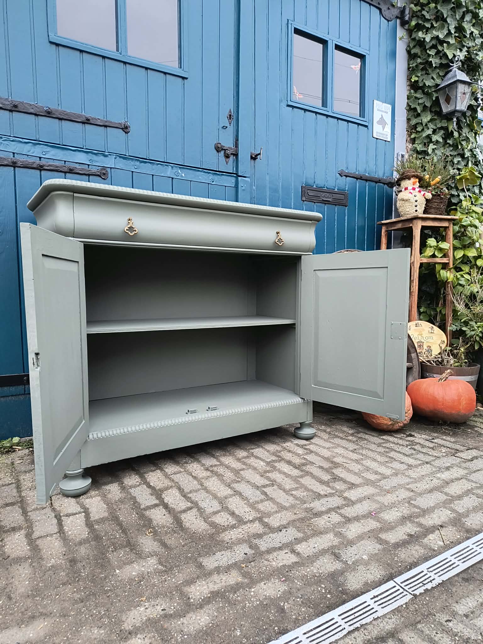 Dit toffe vintage biedermeier meidenkastje in in de prachtige kleur eucalyptus groen. Deze kastjes zijn echt vintage en komen uit begin jaren 1900. Voor de leeftijd is dit kastje in goede staat. Deze kasten worden ook vaak als commode gebruikt. Per direct leverbaar en binnen een week bij u thuisbezorgd.
