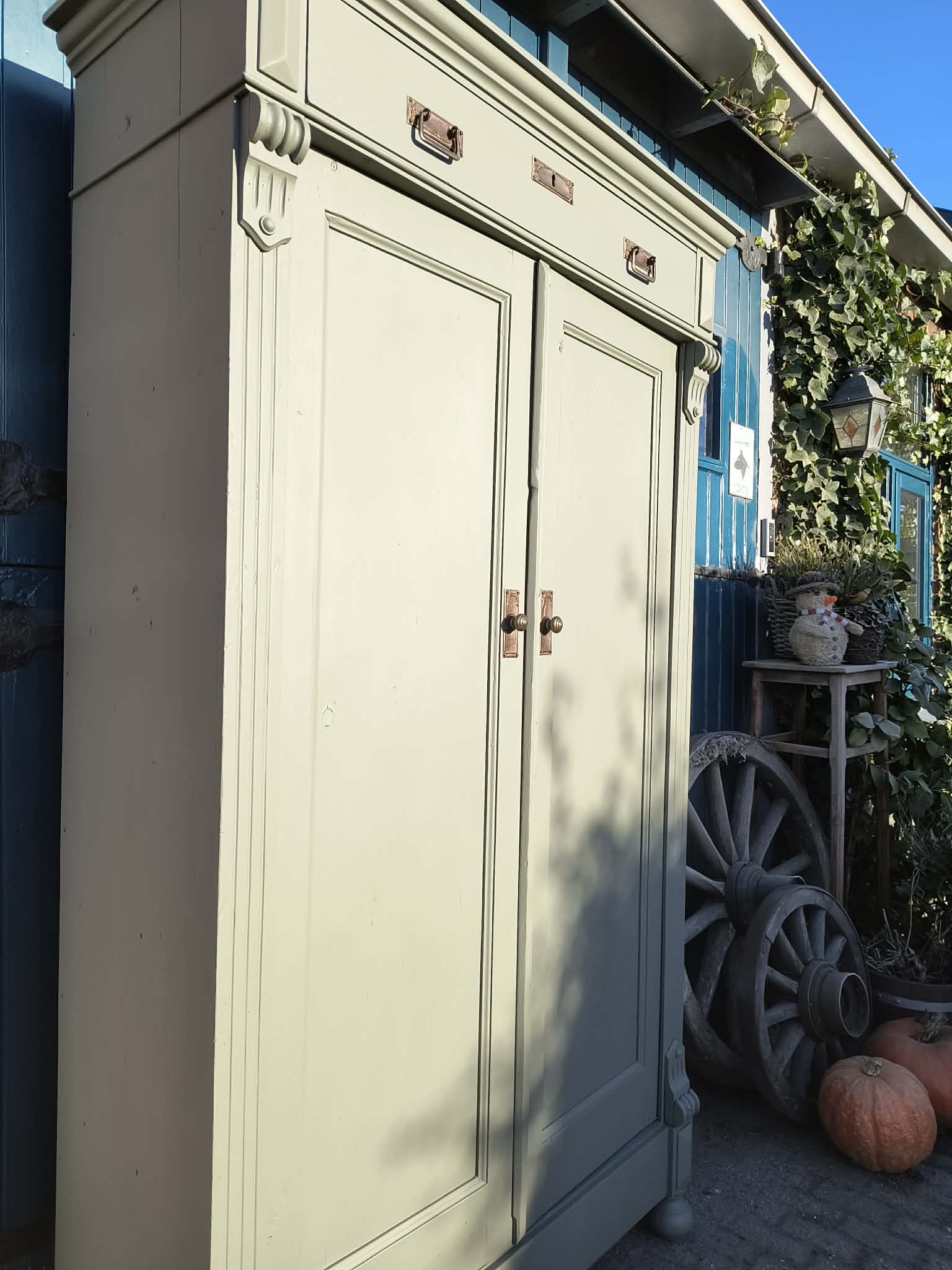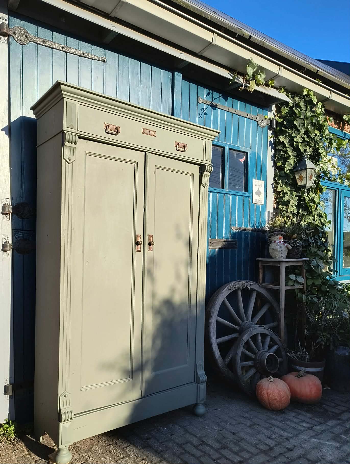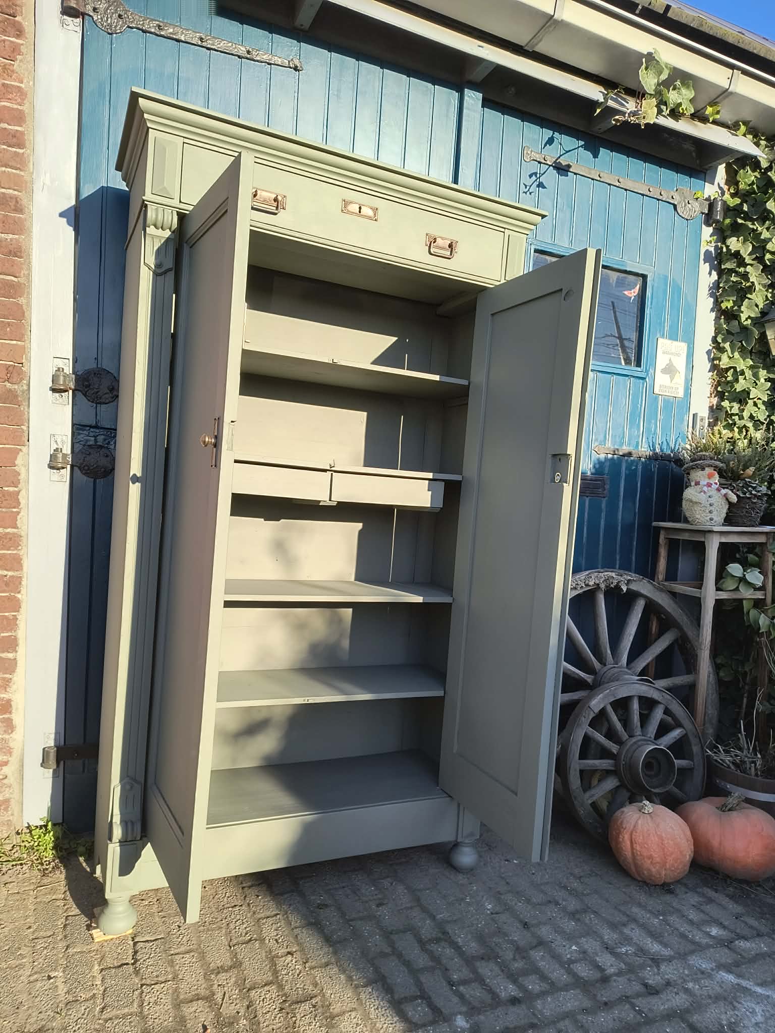Deze vintage linnenkast is ook ideaal als buffetkast. De kast neemt niet veel ruimte in beslag maar heeft veel opberg mogelijkheden. de kleur is eucalyptus groen. Per direct leverbaar. Dagelijks te bezichtigen op afspraak in onze showroom. Binnen een week bij u thuisbezorgd.