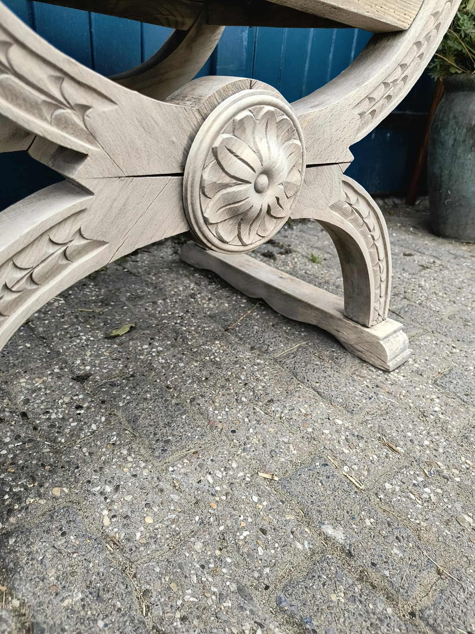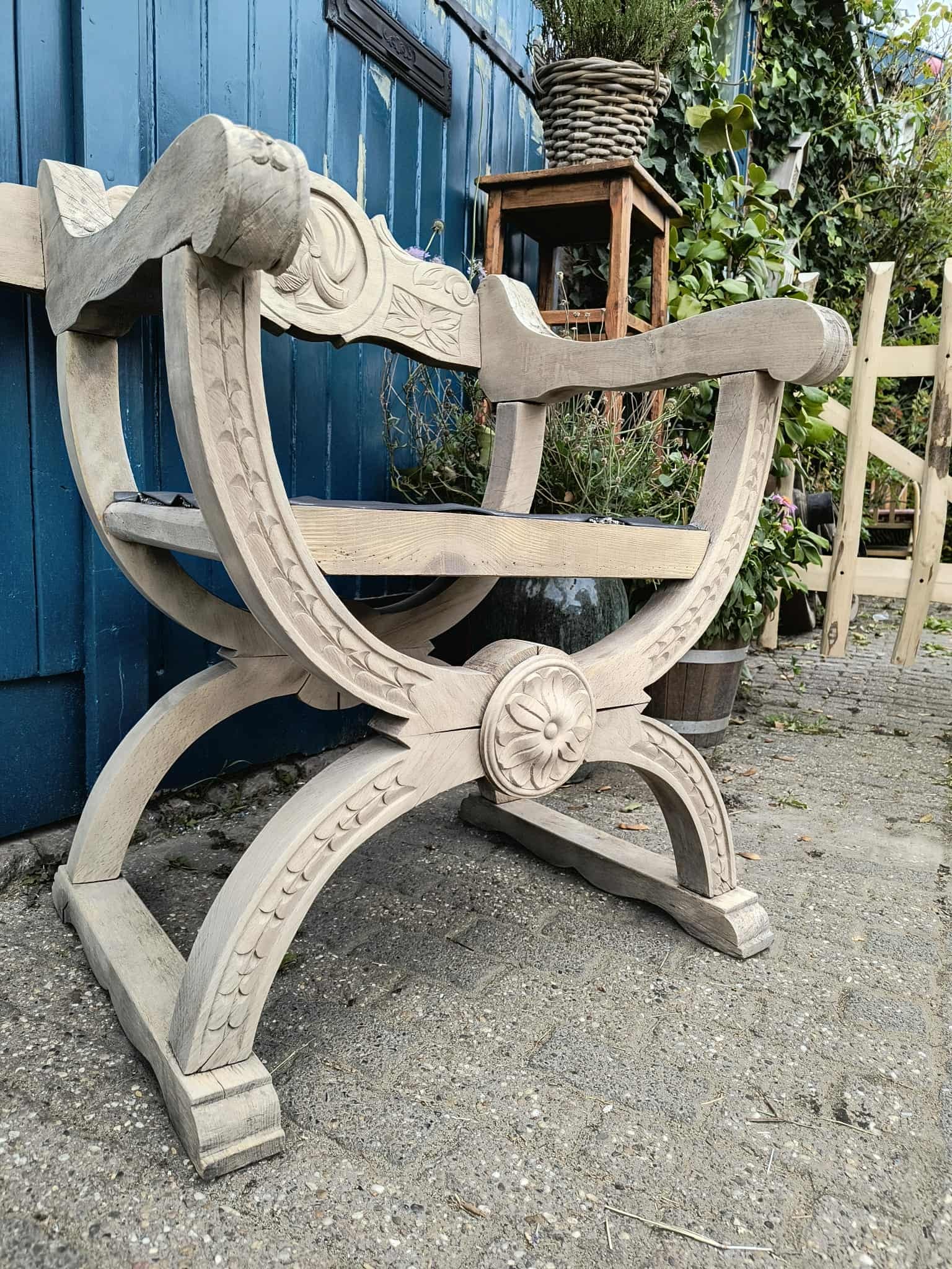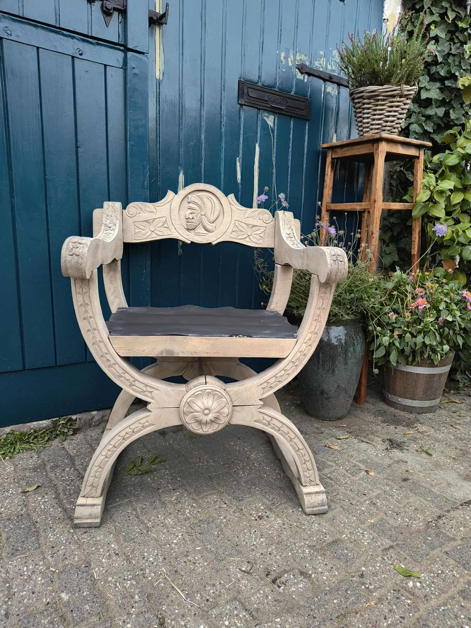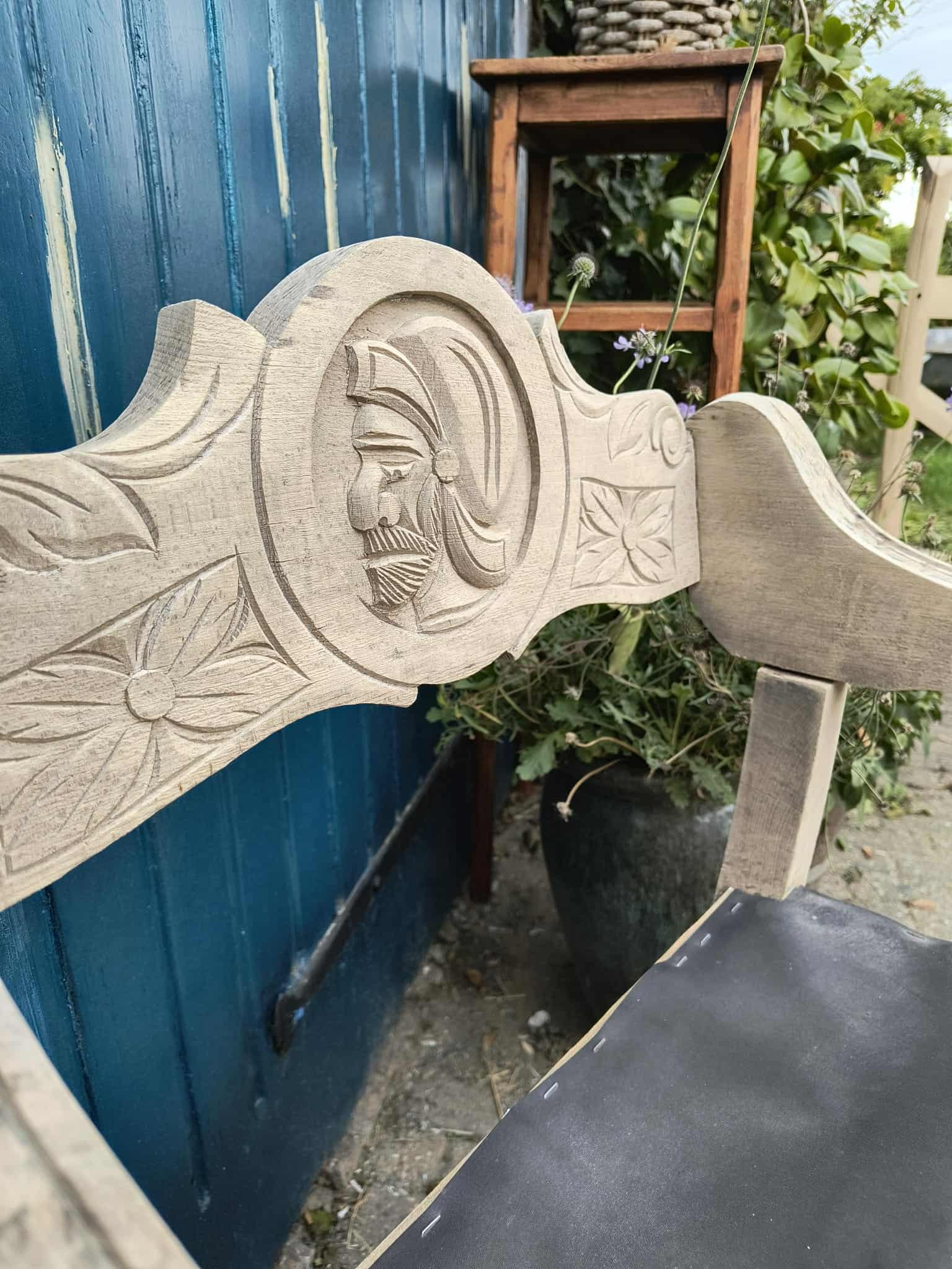 Deze vintage antieke stoel heeft prachtig houtsnijwerk. De stoel is geheel gezandstraald. Het zitvlak zit heerlijk vanwege de veren een de onderkant. Alleen nog een mooi kussen of deken en de stoel is helemaal af! Per direct leverbaar. Dagelijks te bezichtigen op afspraak of thuisbezorgd binnen een week